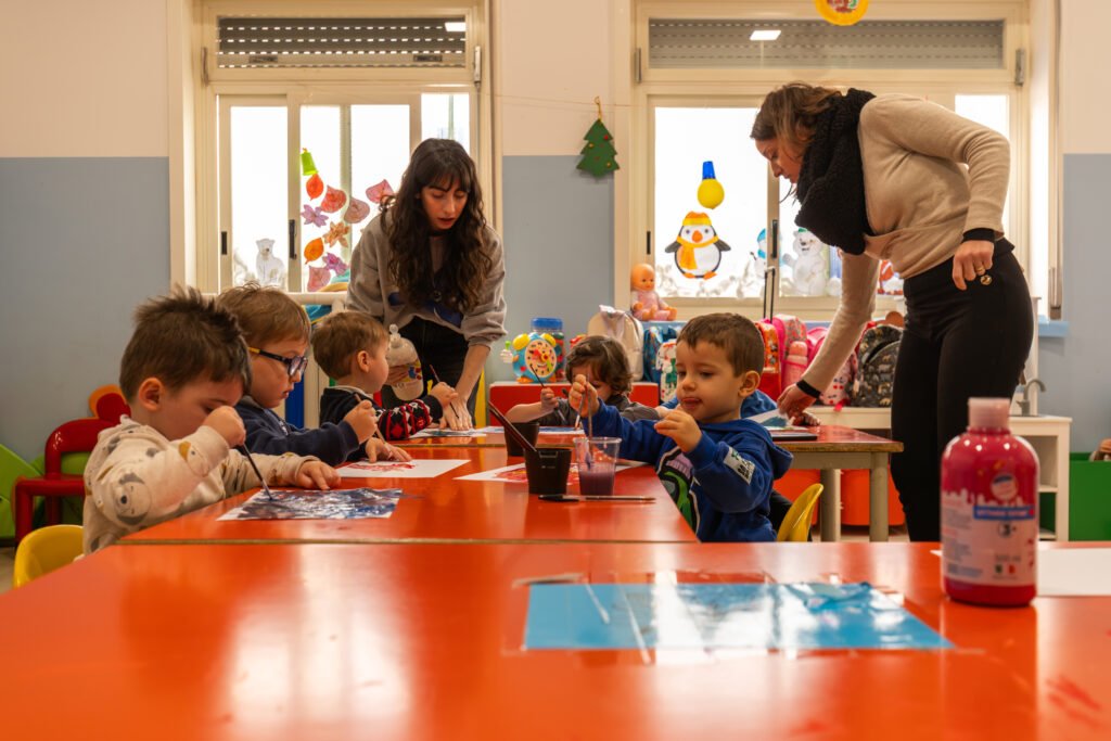 Qui i bambini imparano attraverso il confronto con coetanei e il dialogo con gli adulti, sperimentando cooperazione, comunicazione e condivisione.