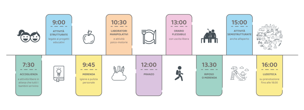 Ogni momento della giornata è pensato per offrire sicurezza, stimoli adeguati e occasioni di crescita,